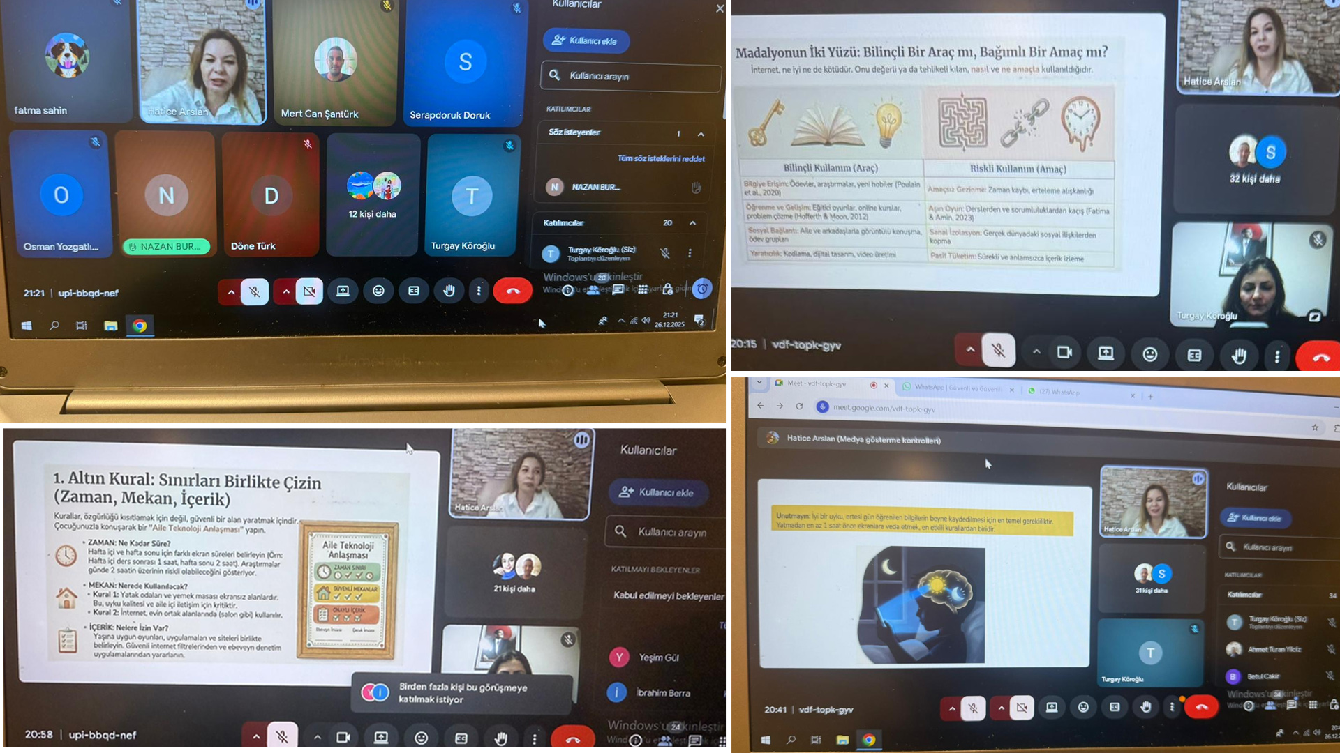Seminerimiz, online eğitim alanında uzman Psikolog Dr. Hatice Arslan’ın değerli katkılarıyla düzenlenmiş; dijital bağımlılıklar, bilinçli internet kullanımı, çocuklar ve gençler için güvenli dijital ortamların oluşturulması gibi önemli başlıklar ele alınmıştır.