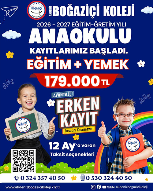 Akdeniz Boğaz İçi Koleji Anaokulu ile çocuğunuzun geleceğine güvenle yatırım yapın ve erken kayıt avantajlarından yararlanın!