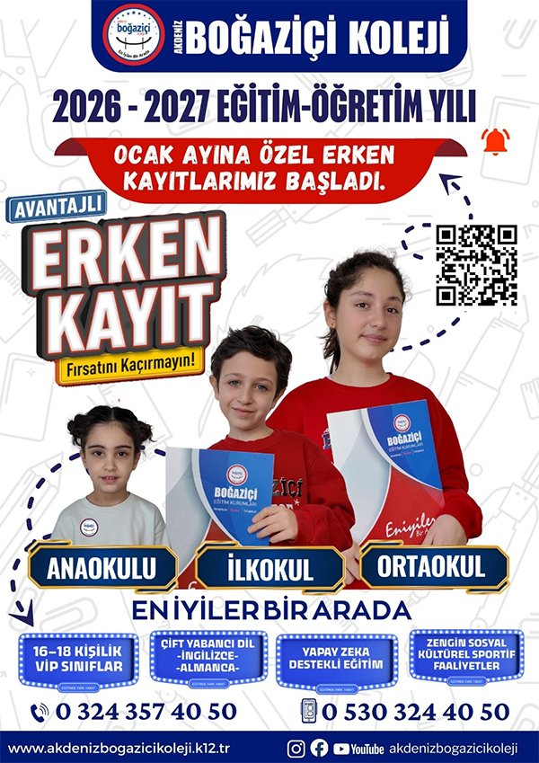 2026-2027 eğitim öğretim yılı için Ocak ayına özel erken kayıtlarımız başladı! Avantajlı erken kayıt fırsatlarını kaçırmayın.